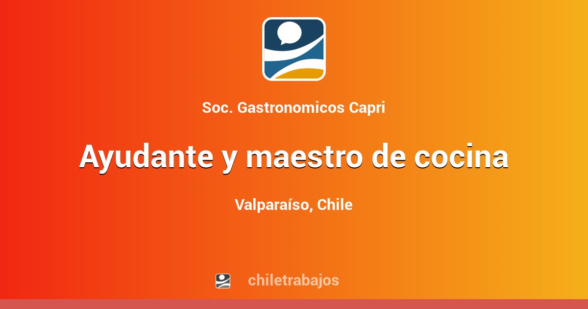 Trabajo Copero/Ayudante de cocina - Santiago | Chiletrabajos from www.chiletrabajos.cl 7:09 francisco j fernandez recommended for you. Empleos de ayudante de cocina, ofertas de empleo cerca de ti en nuestra bolsa de trabajo, tu próximo empleo está en occmundial. 41 ofertas de trabajo de ayudante cocina este mes de octubre 2020 en acciontrabajo, la red de profesionales y empleos de ayudante cocina. Encuentra el empleo que se adapte a lo que buscas. El empleo de ayudante de cocina que estás buscando lo encontrás en zonajobs.com.ar, la bolsa lider de empleo en argentina. Limpiar, pelar y cortar las verduras. ✅ 258 nuevas ofertas de trabajo de ayudante cocina.✅ entra en jobatus y encuentra con un sólo click todas las ofertas de empleo de ayudante cocina. Precisamos ayudantes de cocina para jornada completa o parcial, con experiencia en cocina tradicional.